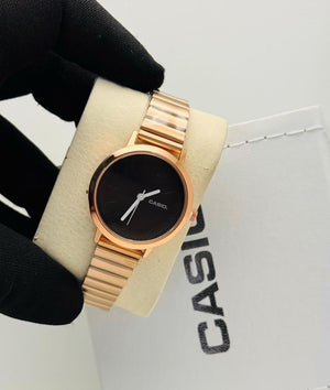 This Casio women’s analog wrist watch features a sleek and elegant design with a rose gold metal strap and a clean white dial. Perfect for everyday wear as well as formal occasions, it combines timeless style with reliable Casio craftsmanship. A great choice for women who prefer a classy and minimal look.