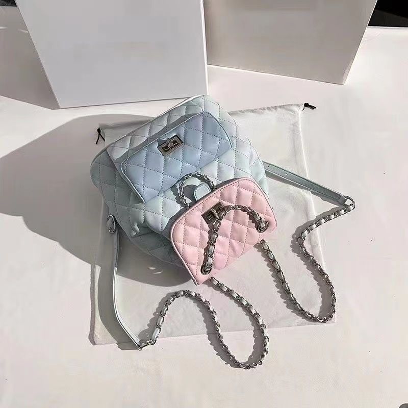 Women's High-end Diamond Grid Contrasting Chain Backpack